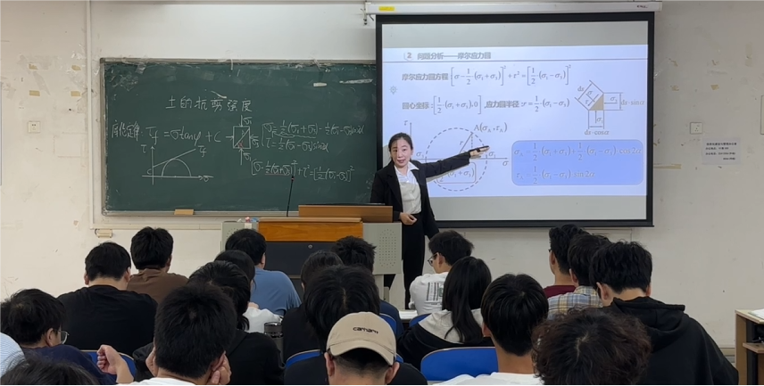 路维老师以工程中的山体滑坡案例为例,详细讲解了土体抗剪强度理论,并强调理论与实际应用的结合。她通过使用多样化的信息技术手段激发师生互动,显著提升了学生的课堂参与度。此外,他还巧妙地将思政元素融入课程内容中,实现了知识传递与价值引导的有机结合。