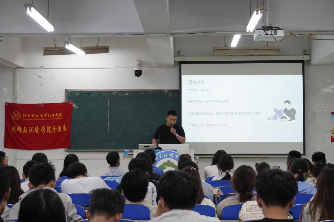 活动伊始,黄云汉老师首先对成功上岸的同学们表达了祝贺,希望他们不忘母校、感恩老师的栽培,并对与会学生提出期望:考研是人生重要选择,也是学风建设关键一环。希望大家以考研为目标,勤奋学习,营造优良学风。同时,结合自身兴趣和专业,做好职业规划,明确考研方向,续写更加辉煌的考研战绩。