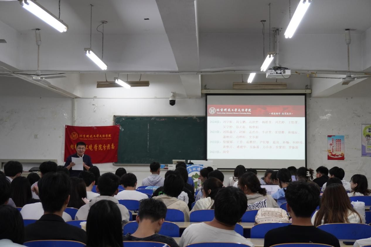 激动人心的颁奖环节,环境系为上一年度2021~2024级通过英语四/六级考试的同学们颁发奖励,在此基础上,材环学院分团委也特意为2024级通过四级的学生颁发了精美的奖品,以此来勉励同学们持续奋斗,争取更好的成绩。