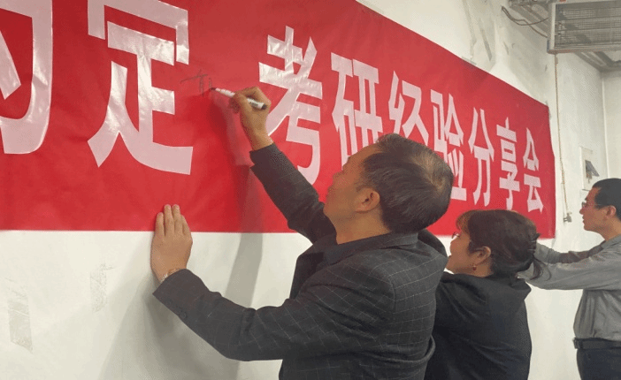 交流会后,各位领导、老师和辅导员也在横幅上写上了自己对2020级备考学子的祝福和寄语。考研之路,来路孤独坎坷,去路光明辉煌。每一抹清晨的书声琅琅,每一个夜晚的奋笔疾书,都是一部艰辛的奋斗史。祝愿2020级每个考研人都眼里有光,心中有梦,不懈努力,奔赴属于自己的星辰大海。