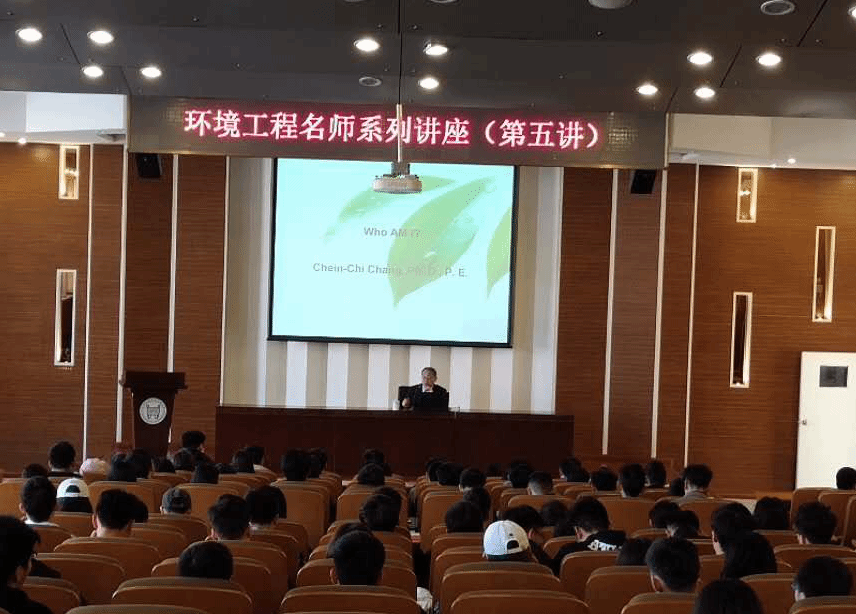 理工报告厅顺利举行。此次讲座,环境工程系邀请了美国华盛顿特区水务局公共空间分析师、国际水环境联合会流域管理委员会主席张建祺教授,作题为“迎接挑战,不留遗憾”的学术报告,17级、18级环境工程系师生及土木系部分学生聆听了张教授的演讲。