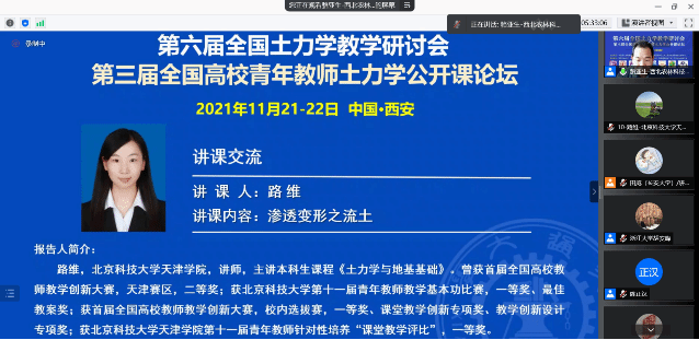 经组委会层层筛选,本次共有31名来自全国各高校的教师获得了讲课交流资格,城市建设学院青年教师路维应邀进行了《土力学与地基基础》课程讲课交流,并获得了与会专家和评委的肯定与认可。