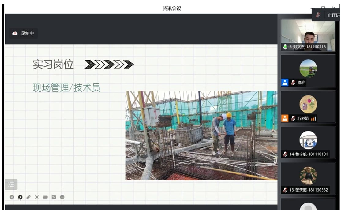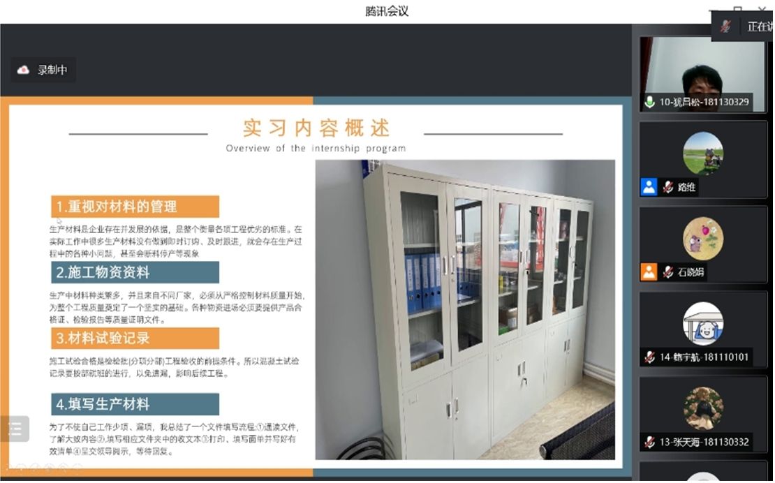 答辩前各组师生根据学院要求认真准备答辩材料,模拟答辩流程,调试录屏设备及会议软件,为答辩的顺利进行做好充足准备。答辩过程中学生采用共享屏幕的方式,对实习过程中所从事的岗位、工作内容以及实习过程中遇到的困难进行了汇报,大部分同学前往企事业单位实习,并从事与土木相关的工作,如工程质量检测、工程造价管理、工程监理等,在实习的过程中将大学所学专业知识与工程实践有机的结合,对自己所学的内容有了深入的了解,并认识到自己的不足,在工作中仍需继续不断学习;还有部分同学在与专业相差较大的单位实习,如12345服务热线,通过接听市民各种反馈意见,亦感受到了生活的酸甜苦辣,这段不寻常的经历也代表着迈入社会的第一步。此外,部分学生根据实习中所遇到的问题,对相关课程在教学时提出了一定的期许,为日后城市建设学院的课程建设提供了强有力的依据。