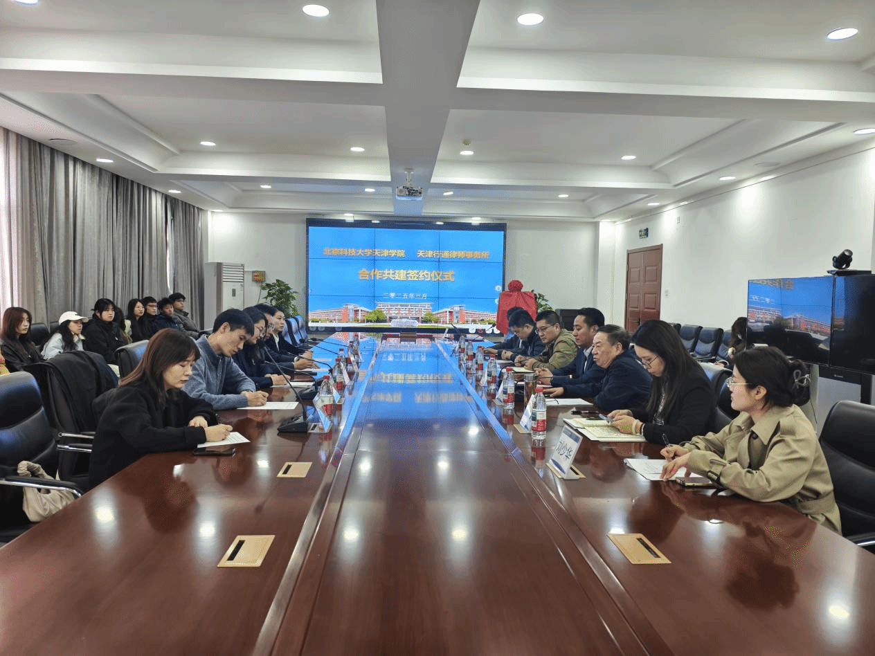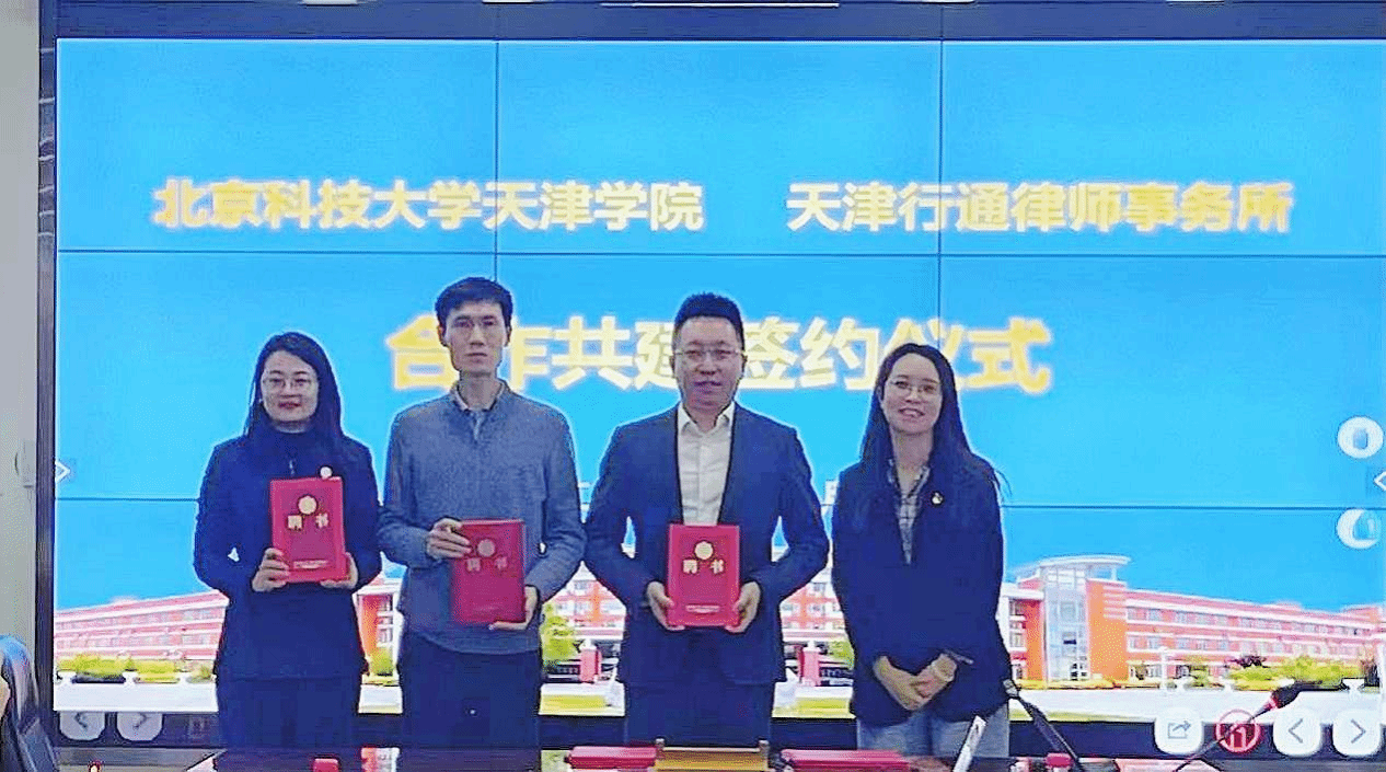 与天津行通律师事务所合作共建签约仪式在12教300会议室隆重举行。天津行通(宁河)律师事务所书记主任、团总支书记王欣宇,天津行通律师事务所民商法律服务中心副主任侯一男、办公室主任张宇,专职律师王裔一行莅临签约现场,新2