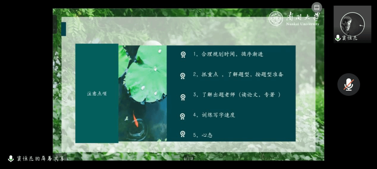 然后由诺丁汉大学拟录取的李思玉、中央司法警官学院拟录取的付可怡以及南开大学拟录取的窦恒杰三位学长学姐为大家分享了自己的备考思路、学习方法以及作息安排,更重要的是让同学们对考前择校及考研流程有了系统的认识。