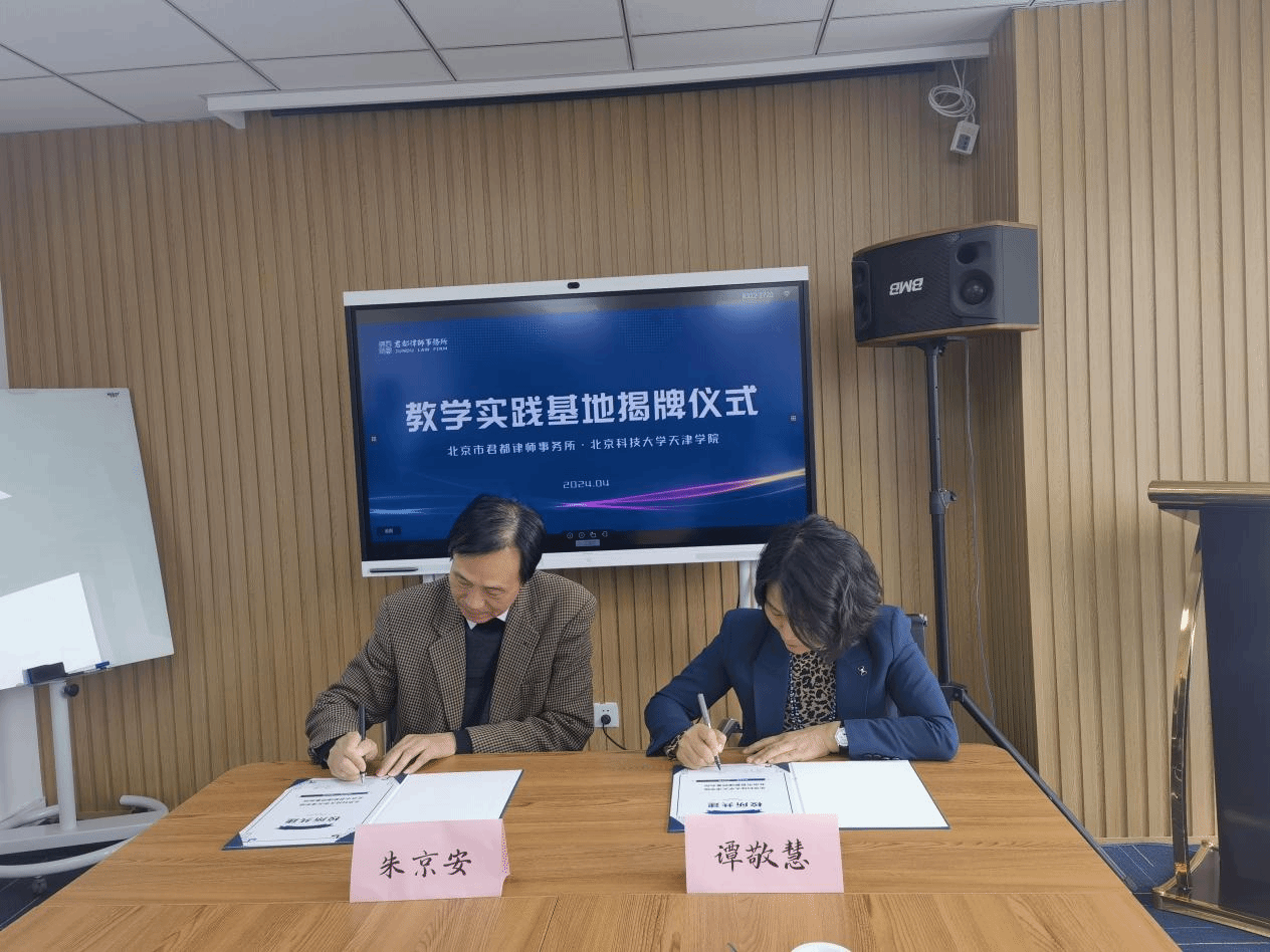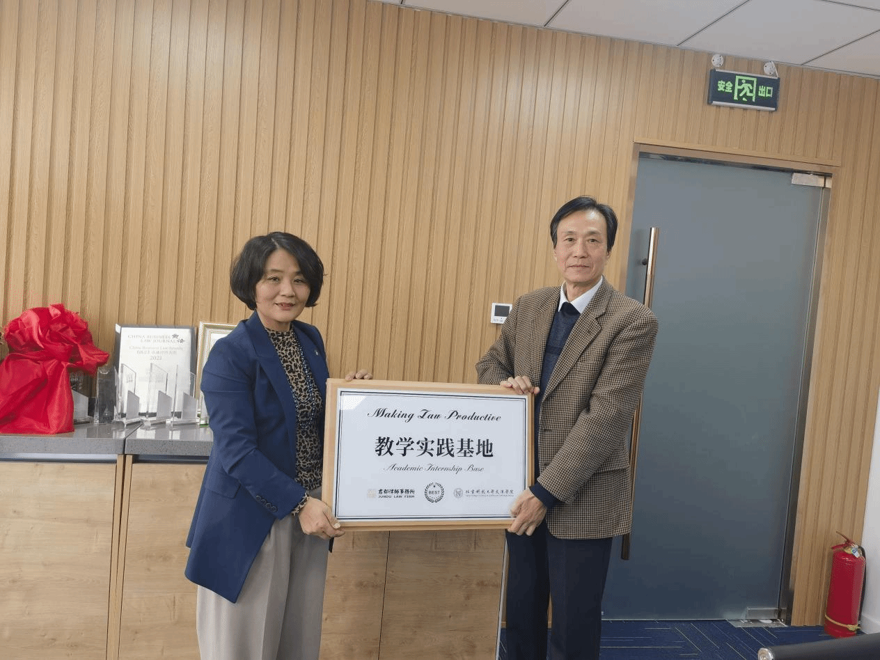 法律系主任朱京安、产学研办公室主任彭鹏及法律系刘国平、何人可、林铁军、李春光等教师赴北京君都律师事务所参观交流,与北京君都律师事务所签署合作共建协议,并为教学实践基地揭牌。