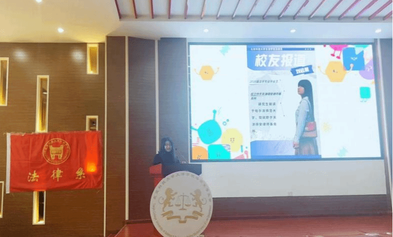 2017届法学专业毕业生孔龙从自己的校园成长之路讲起,感叹再次站上学术报告厅演讲台的心情变化。之后与学弟学妹们分享了自己的学生干部、考研备考、学术科研、律所工作和恋爱家庭的经历,用自己毕业后学习、生活、工作的经历来鼓励同学们坚守理想、锤炼本领、发挥所长、不断奋进、永不言败,让人不禁感叹努力的人自带光芒。