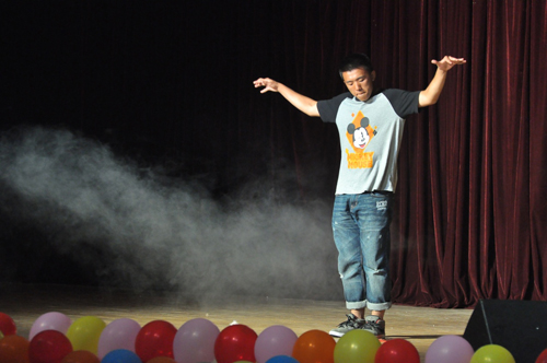 整个晚会分上下两个篇章进行,七点整在主持人激情的开场白中拉开了帷幕,首先由学生艺术团常务副团长胡孟居发表演讲,紧接着由艺术团新团员代表侯林林发言,学生艺术团团长林碧芸老师也向全场致以激情洋溢的新生致辞,博得了大家热烈的掌声。然后学生艺术团各副团长向大家介绍了艺术团各部门基本情况和各自的职能,其中有职能部门和演出部门,职能部门包括办公室、演出管理中心、文化宣传中心、外联事务中心。演出部门包括管乐团、民乐团、合唱团以及舞蹈团四大社团以及主持人队、礼仪队、戏剧社和国旗班。精彩的演说让大家对艺术团有了更深的认识和了解,为同学们今后在艺术团更好的工作和学习鉴定了良好的基础。至此上篇结束,下篇的精彩节目也让大家很是期待。管乐团的合奏《欢乐颂》为晚会的下篇吹响了号角,轻松愉悦的节奏让现场的气氛很是融洽;接着由办公室送出二人对唱《一个像夏天一个像秋天》,深情地对唱让大家陶醉在了其中;舞蹈团街舞社也带来了青春洋溢、活力四射的群舞《Low》。一个个精彩纷呈的节目随之上演——由演出管理中心二人深情对唱了《老男孩》,戏剧社也献上了精彩的小品《新生那点事》,惹得现场观众阵阵大笑;礼仪队和国旗班也不甘示弱,温馨浪漫的歌伴舞《恋爱达人》仿佛让大家置身恋爱的海洋,感受爱情的浪漫。外联事务中心的独唱《开始懂了》又把大家带回了现实,陷入了对感情的沉思。舞蹈团民舞团的舞蹈《艺术体操》和《咏春》把大家带进了艺术的殿堂,让大家感受到了民舞的魅力和美感。接下来民乐团也合奏了轻松欢快的《赛马》和《哆啦A梦》,合唱团的歌曲串烧《星晴》、《喜欢寂寞》、《潇洒小姐》、《我》、《我期待》,这一首首风格各异,但都给人似曾相识之感的歌曲在不同歌手的演唱中也带给人不同的回忆与感触。最后,主席团成员劲爆的热舞《江南style》把现场的气氛推向最高潮,同时也为本次晚会画上了圆满的句号。纵观整场晚会,气氛欢快、基调热烈,艺术团全体成员通过演唱、舞蹈、管乐合奏、民乐合奏等艺术形式,为全场观众奉献了一场饱含激情、别具特色的演出。