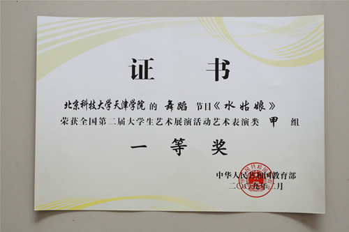 舞蹈《水姑娘》第一个出场。伴随着悠扬的乐曲,团员们表达出最真挚的情感,展示出最美的舞姿,感动了在场的所有观众和评委。最终,凭借着团员们出色的发挥,在第一个出场的不利条件下,一举获得了一等奖的优异成绩。