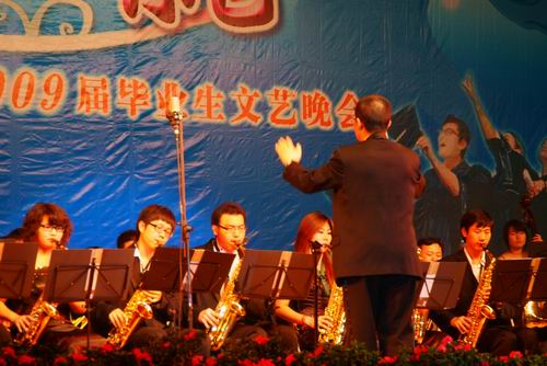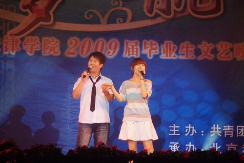 2009届毕业生文艺晚会在体育馆隆重上演。本次晚会由共青团新2