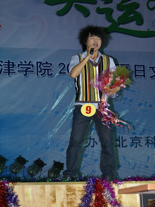 第六届校园歌手大赛亚军啜吴昊老师上台为同学们献上歌曲《滚滚长江东逝水》和模仿女声演唱的《天路》,啜老师对歌曲完美的诠释博得了台下观众的阵阵喝彩,把比赛又带入了新的高潮。