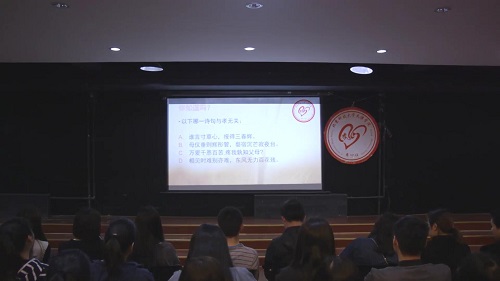 一段简单的视频“二十年后的父母”开场之后,视频中的子女无法接受被化妆成二十年后年迈模样的父母,许多同学内心也不禁一阵酸楚,随后孝心社宣讲员陈雨与大家分享了她对孝的理解。 “孝心,并非是长大后才有的责任,也并非是用金钱就能弥补”、“孝心其实很简单,作为大三的我们将自己的毕业规划与父母的期望结合起来是最值得父母欣慰的孝”、“勤学如奋起之苗,不见其长,而日有所长”好好学习是学生阶段对父母尽孝的最好形式,朴实的话语道出了她对孝的点滴体会,也道出了同学们的心声。法学1401班同学自己拍摄并制作的视频记录了他们对父母想说的话。随后,主持人进行现场互动提问,“父母的喜好是什么?”、“你手机里有父母的照片吗?”、“你多久给父母打一次电话?”,简单的问题,让很多同学陷入沉思,也使大家明白“行孝不能等”的道理。部分同学的父母在视频中用书信表达了他们对于在远方求学的同学们的挂念和祝福。活动最后,同学们将自己对父母想要说的话写在留言板上,其中有同学写道“我想我什么都可以没有,但一定不可以失去你们,我爱你们,我一定会努力去实现自己的梦,我不会让你们失望的”,也有同学写道:“爸爸妈妈,其实我很爱你们,我希望能给你们带来快乐,也为了变得强大给你们更好的生活而努力,也希望你们能聆听,我们能多一些交流。” 一句句简单的话表达了对父母真挚的爱。