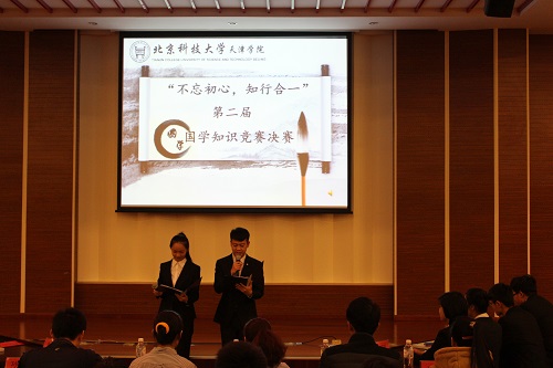 12月7日晚七点,“不忘初心,知行合一”第二届国学知识竞赛国学知识竞赛决赛在理工馆学术报告厅正式拉开帷幕。团委书记孟祥瑜,图书馆综合业务部主任王妙丽、图书馆参考咨询部副主任兰晓霞、团委副书记周少华、信息系分团委书记任兆欢、团委部长林小茹、赵怡、孙超、李光老师及二百多名学生参加了此次活动。决赛分为五轮答题,分别为团队必答题、个人必答题、60秒快速问答题、观众互动答题和两轮风险题,答题结束后,如出现同分队伍则进行附加赛。比赛开始前,由新2
