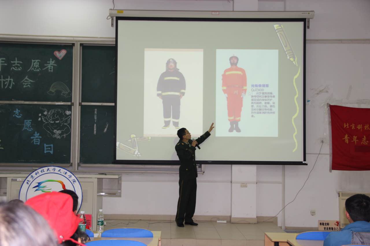 青年志愿者协会联合保卫处邀请到了宝坻区京津新城消防支队副队长顾永涛,战士班班长肖佳为新2