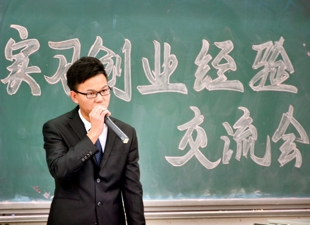 紧接着是本校的创业者焦晓光,他现在开着自己的餐厅,他从他的亲身经历中告诫我们创业所需要的品质:能吃苦,能坚持,有能力。创业并不是那么遥不可及,主要看你敢不敢,能不能。