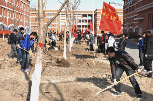 2011年度植树活动。院团委书记罗富臣、副书记迟铁、副书记孟祥瑜、各分团委书记及团委各部长出席了此次活动。