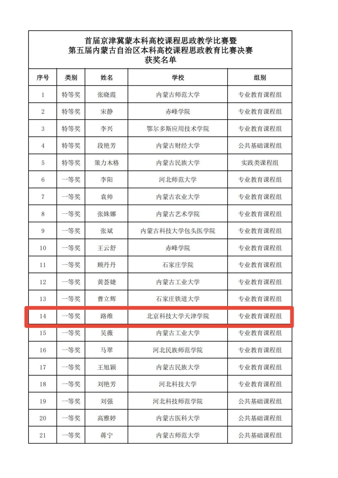 【喜报】新2 路维老师荣获首届京津冀蒙本科高校课程思政教学比赛决赛一等奖!