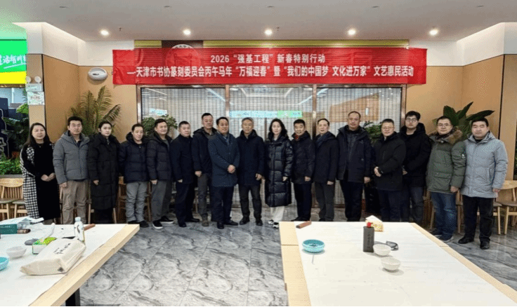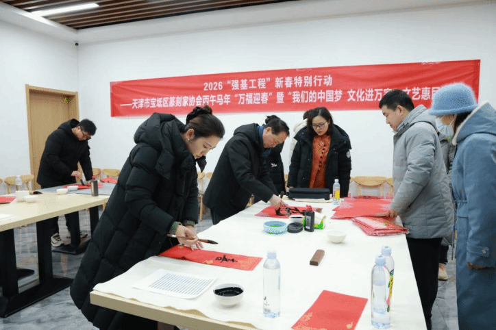 为深入贯彻落实“强基工程”与“我们的中国梦·文化进万家”号召,推动中华优秀传统文化扎根基层、滋养校园,2026年1月19日上午9:30,由天津市书法家协会篆刻委员会主办的新春特别行动“万福迎春”文艺惠民活动在新2