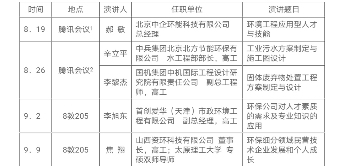 为强化工科应用型人才实践技能的培养,促进人才供给侧(学校)与人才需求侧(企业)的有效沟通,构建“教学与实践相结合”的人才培养模式,城建学院环境工程系将举办《企业家进课堂》系列讲座。此次系列讲座将聘请著名央企、国企或民企的企业家给环境工程系学生介绍环境相关职业及对人才素质的需求、企业发展对学生专业技能的需求、学生在职场发展的要求等;同时企业家们将分享他们的职业生涯经历和人生经验,以期帮助学生们尽早走出迷茫,树立目标并进行合理的学业与职业规划,利用在校的黄金时期掌握走向社会所必需的技能。