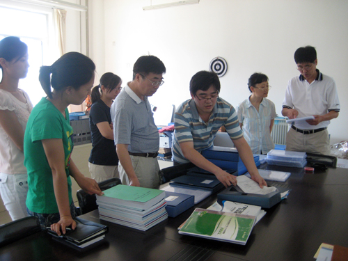 检查小组在基础部办公室进行问题讨论汇总,经过充分的讨论沟通,大家形成了以下几个方面的共识:首先,各个系部尤其是系秘书做了大量工作,在档案保存方面足以看出成效;其次,目前主要问题是系秘书经验不足,没有档案管理的系统方法和经验,应该规范化系部档案管理程序,明确基本收存要求,以利于档案的管理;第三,文件盒基本都没有相应目录,不利于查找,也不能体现出存档过程。第四,每个系应该有自己系的特色档案,即单项活动档案;第五,普遍存在的硬件问题,资料室和文件柜不足。以上共识已和教务处沟通,他们表示大力支持学院的系级档案建设。