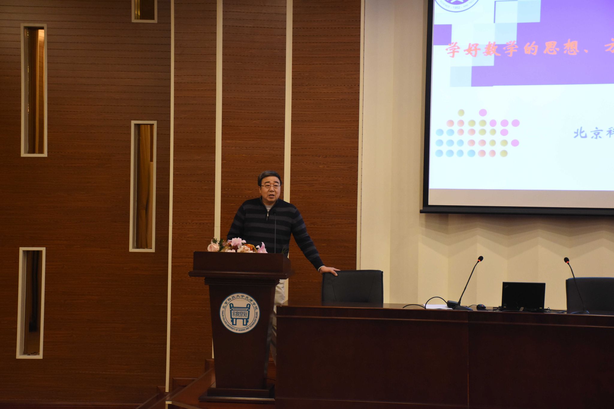 数理学院教授、北京市教学名师、中国高等教育学会教育数学专业委员常务理事、北京市数学学会常务理事、北京市数学学会大学工作委员会副主任、北京经济数学学会副理事长、国家奖励办咨询专家郑连存教授,于理工图书馆学术报告厅,开展了一场以“学好数学的思想、方法,启迪智慧人生”为主题的学术讲座。基础部主任范玉妹、副主任李徽、新2