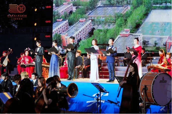 3000余名受邀嘉宾、校友代表、师生代表一起到场观看演出。广大师生校友通过网络直播云端相聚,同享盛会,共同庆祝母校20周年华诞。
