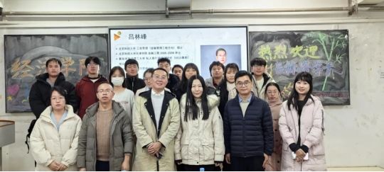 交流会结束后,吕林峰学长和师生代表们合影留念。此次校友职业生涯交流会为新2