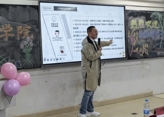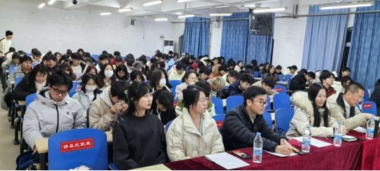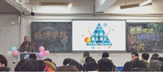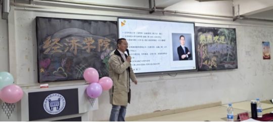 工商管理硕士吕林峰为全院师生举办了一场以成长四部曲:学业-择业-事业-基业为主题的职业生涯交流会。本次大会由经济学院党总支书记胡洪强主持,经济学院副院长米岩老师、分团委书记孙雨馨老师、学生党支部书记杨海静老师、叶飞阳老师及经济学院全体学生参加交流大会。