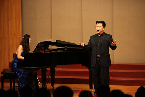 本次汇演特别邀请到中国著名男低音歌唱家、中央音乐学院教授、硕士研究生导师、中国音乐家协会会员彭康亮以及著名女高音歌唱家、中国歌剧舞剧院著名演员、中国音乐家协会会员王燕为观众献唱。彭教授带来的《三套车》和《凤阳花鼓》低音深沉圆润、悠扬穿透、像天鹅绒般柔软而富有弹性,感染了在场所有观众;王燕教授则用她富有张力的舞台表演及婉转高亢的女高音完美演绎了歌曲《帕米尔我的家乡多么美》和《美妙歌声随风飘荡》,使现场完全沸腾。展演在热情洋溢、脍炙人口的四重唱与大合唱《饮酒歌》中圆满落下帷幕。