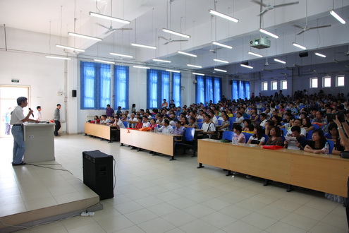 在九教109室召开了2010级新生家长见面会,院长郭景文教授向2010级新生家长介绍学院情况并回答问题。新生家长热情高涨,教室座无虚席。
