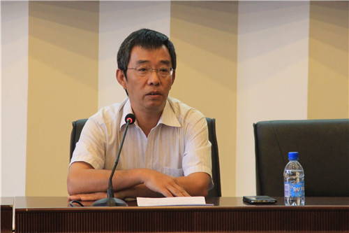 图书馆学术报告厅召开,院长郭景文教授向2014级新生家长介绍学院情况并回答问题。