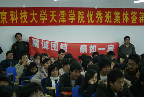 答辩以参评班级按抽签顺序进行现场答辩,各个班级派出1-4名代表向评委和同学们介绍本班情况,最后由评委提问并评分。