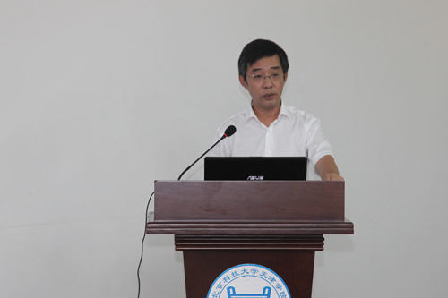 院长郭景文教授代表学院向专家组做工作汇报,从学院基本情况、规范学院建设与管理、坚持内涵发展,提高办学水平、学院下一步重点工作等方面向专家组全面汇报新2