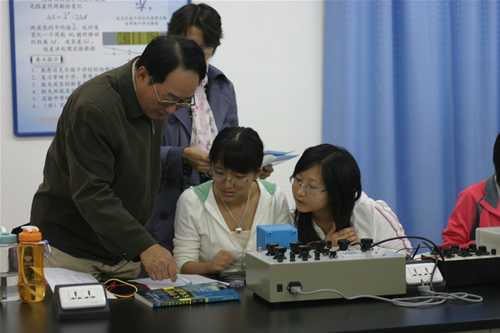 郭景文院长、教务处吴平副处长、实验技术中心许学东主任、院办白亮主任等陪同下,走访了10教和7教实验楼,分别考察了物理实验室、化学实验室、计算机实验室、外语教学语音室等,详细询问了设备的配置情况、学生到课情况、教师教学情况,并与学生进行深入交谈,对学生实验操作能力、实验报告以及他们对实验课设置、开展的建议进行了解。