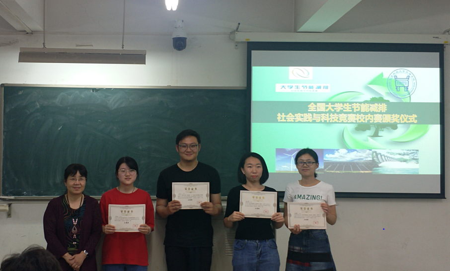 大学生节能减排社会实践与科技竞赛校内赛颁奖在8教205举行。环境工程系主任汪群慧教授、学生竞赛指导教师刘俊杰、班岚、李敏、宋娜、张丽荣等出席了会议,并为在校内赛中获奖的团队颁奖。