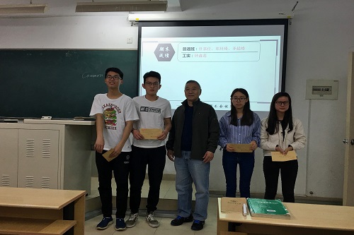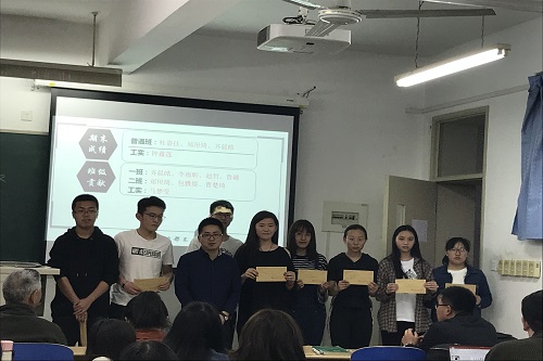 该活动由“固体废物资源化党支部”书记王晓娜博士主持。活动的第一个环节,是对环境工程系上学期具有突出表现的同学进行表彰,院长刘胜富教授、系主任汪群慧教授、辅导员王鑫辅老师分别为学习成绩优异、班级贡献突出、英语学习勤奋的同学颁发了奖品,对在各方面起到模范带头作用的同学进行了表扬与肯定,希望他们再接再厉,也希望其他同学向之学习。