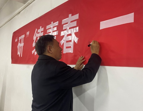 交流会后,各位领导、老师和辅导员也在横幅上写上了自己对2020级备考学子的祝福和寄语。考研之路,来路孤独坎坷,去路光明辉煌。每一抹清晨的书声琅琅,每一个夜晚的奋笔疾书,都是一部艰辛的奋斗史。祝愿2020级每个考研人都眼里有光,心中有梦,不懈努力,奔赴属于自己的星辰大海。