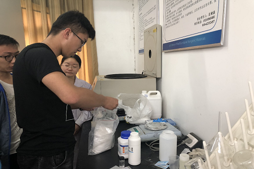 无机非金属结构材料研究室党支部研究生党员代表为全体党员操作了光催化模拟实验,并与新2