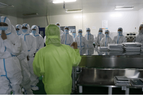 在博宇半导体材料有限公司实习的过程中,学生们按要求扫码入厂并配戴口罩和安全帽,按规定上交手机,学习了解了半导体分立器件、电子专用材料及特种陶瓷制品的研发与生产。