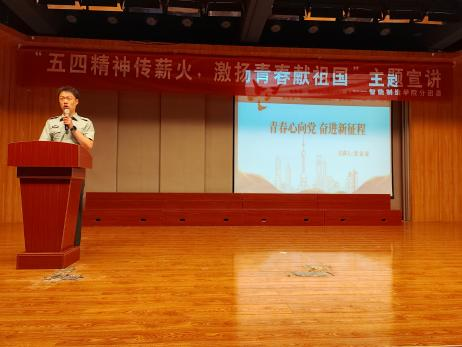 为深入学习贯彻党的二十大精神和习近平总书记关于青年工作的重要思想,以朋辈榜样力量引领全院青年传承五四精神、励志勤思笃学,5月4日下午,智能制造学院分团委举办“五四精神传薪火,激扬青春献祖国”主题宣讲活动。智能制造学院院长陈宝江、学院团委副书记赵慧敏、武装部老师刘武辉、全体辅导员、2021-2022级学生参加,活动由分团委书记李雲啸主持。