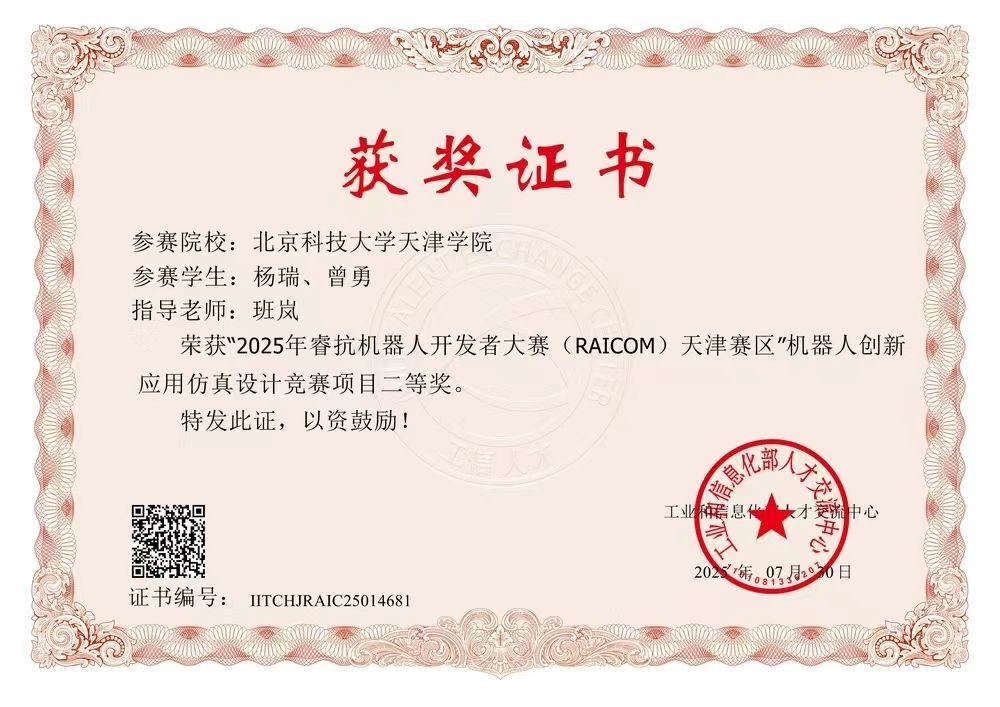 | 机器人创新应用仿真设计 | R25061610240 | 杨瑞、曾勇 | 班岚 | 北京科技大 学新2