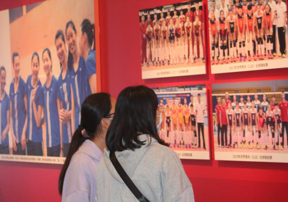前去参观的同学们也对此次展览表现出了浓厚的兴趣,大家时不时地停下脚步,驻足在一件件展品、一幅幅照片、一个个奖杯面前,纷纷讨论着各件展品背后所蕴含的感人至深的女排故事。