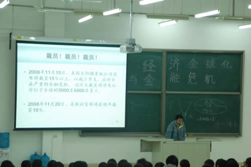 于一博士分别为机械工程系、经济系、管理系师生做主题为“经济全球化和金融危机”的专题讲座。机械工程系、经济系、管理系广大师生参加了讲座。