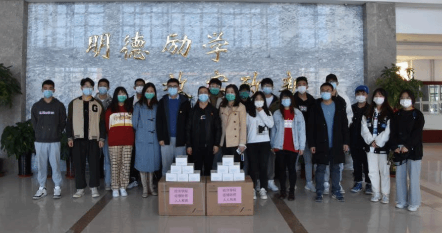 经济学院老师和辅导员为学生发放口罩