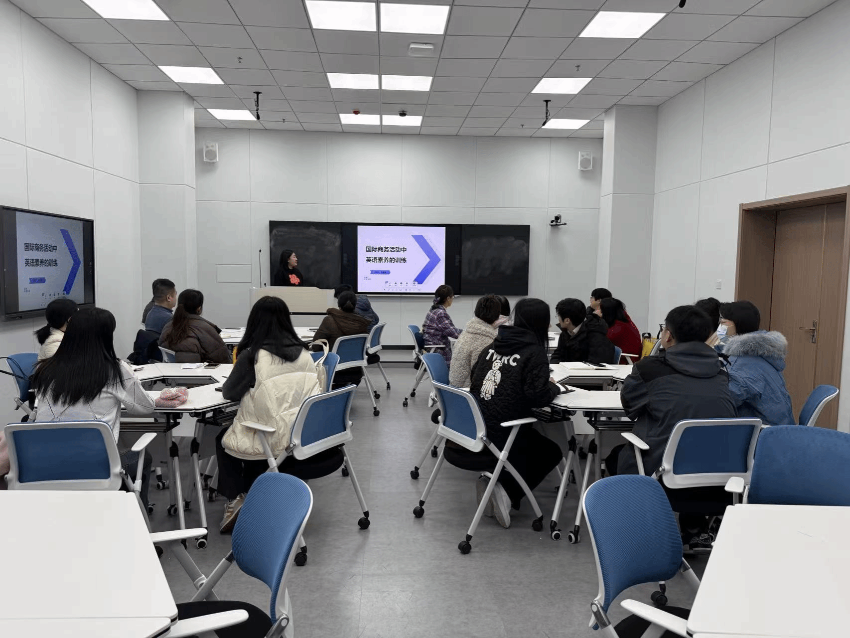 本次研讨会紧扣“国际商务英语素养训练”这一主题,内容系统、探讨深入,与会教师一致认为,此类聚焦具体教学问题、注重实效的研讨活动,对推动课程质量提升、强化教师教学能力具有积极作用,也为学院持续推进“从廿年到卅年”教学系列工作注入了新的动力。