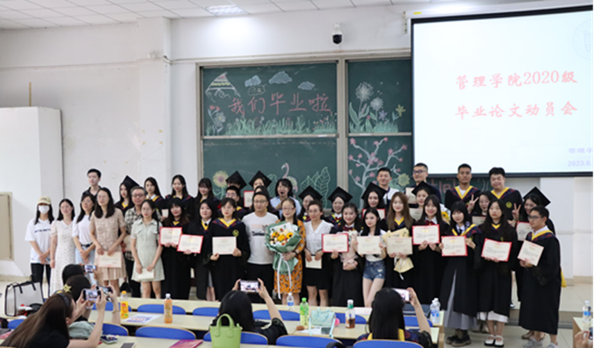 优秀毕业论文”奖项,共5位同学获得“管理学院优秀毕业论文”奖项,共11位指导教师获得“优秀指导教师”称号,仪式感满满的颁奖仪式对20级同学起到了很好的榜样和表率鼓舞作用。