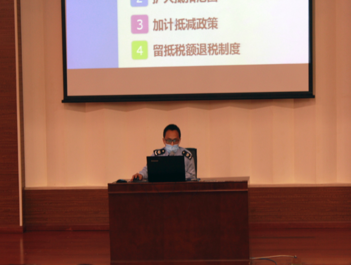 首先由李建勇讲师就近阶段增值税改革相关政策为大家介绍了国家最新增值税改革、扩大进项税抵扣范围、提高小规模纳税人免征额等多项减税降费举措;夏奇峰讲师为大家讲解了社保费概念,介绍了天津市社保税征现状;宋振昌讲师为大家详细介绍了企业所得税相关优惠政策;刘振海讲师深入浅出地为大家解读了新个人所得税法,从提高个税起征点、增加专项附加扣除、个人所得税计算等方面说明了国家税改红利。