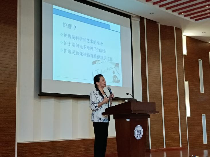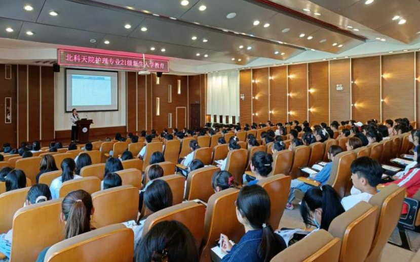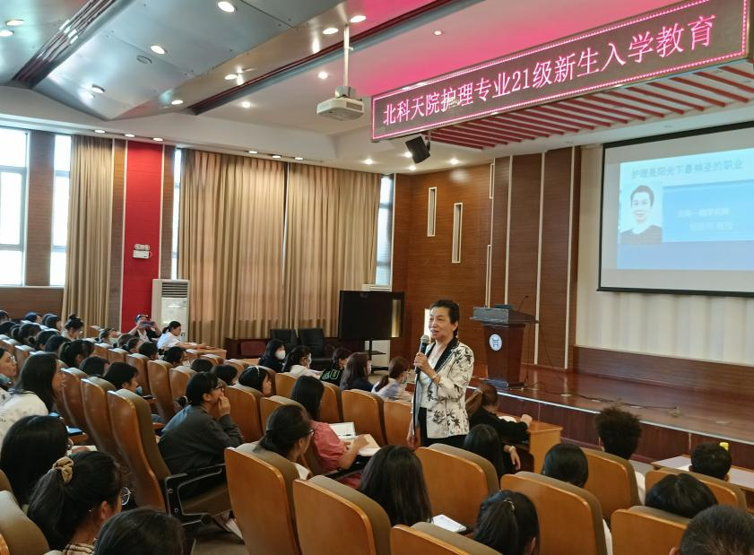 大健康学院护理学专业2021级新生入学教育,在理工馆学术报告厅成功召开。护理系主任杨新月教授为学生做了一场振奋人心的“护士是阳光下最神圣的职业”专题讲座,学生们反响热烈、情绪高涨。大健康学院副院长王堃,副主任顾红霞、邢冬婕,辅导员付颖元及159名护理专业新生参加了本次活动。