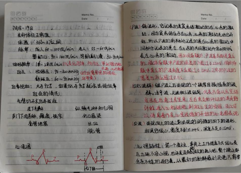 在宝坻区人民医院实习的同学们,经历理论与操作考核后,大大提升了操作技能,学到了课堂之上难以学到的知识。其中张炜同学的实习笔记作为优秀笔记在科室间传递学习,舒莎、张瑞丽等同学的表现受到护士长和带教老师的肯定和表扬。