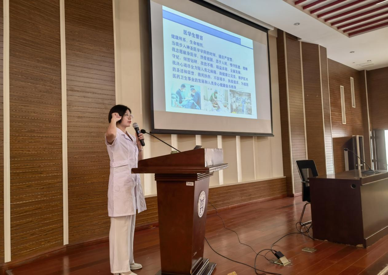 最后,由副主任邢冬婕带领全体新生宣读医学生誓言,让大家充分认识到作为一名医学生的责任与担当,激发献身医学的内在动力,坚定了为祖国卫生事业和人类健康奋斗终身的决心!